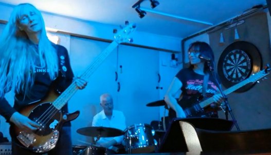 Joining Josie in Patrick Moore is Christie Moore, the bass player who has been playing with the band for over 3 years. Christie previously played in A Touch of Class and Sisters of Duras, and is 6 ft tall with blonde hair. Her musical influences include Sister of Mercy and Rammstein. | ![]() |